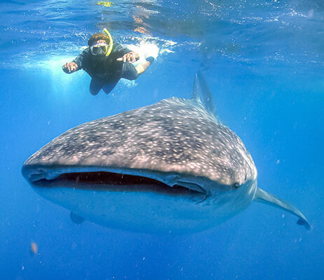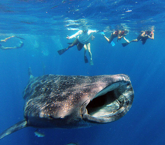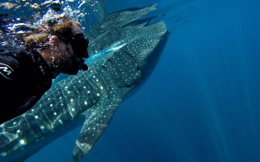 The whale sharks are an unforgettable sight, as they glide along the surface, their mouths opening up to 5ft wide to feed on plankton.